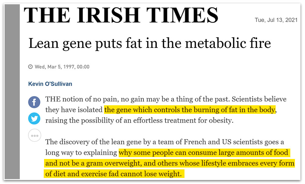One of the secrets we discovered to target your lean gene and get rid of extra belly fat was...